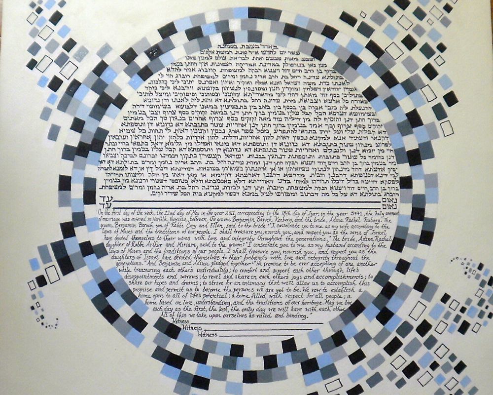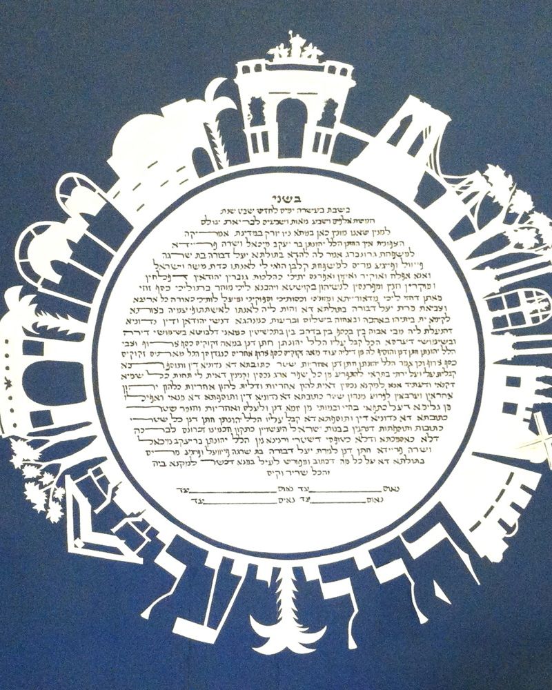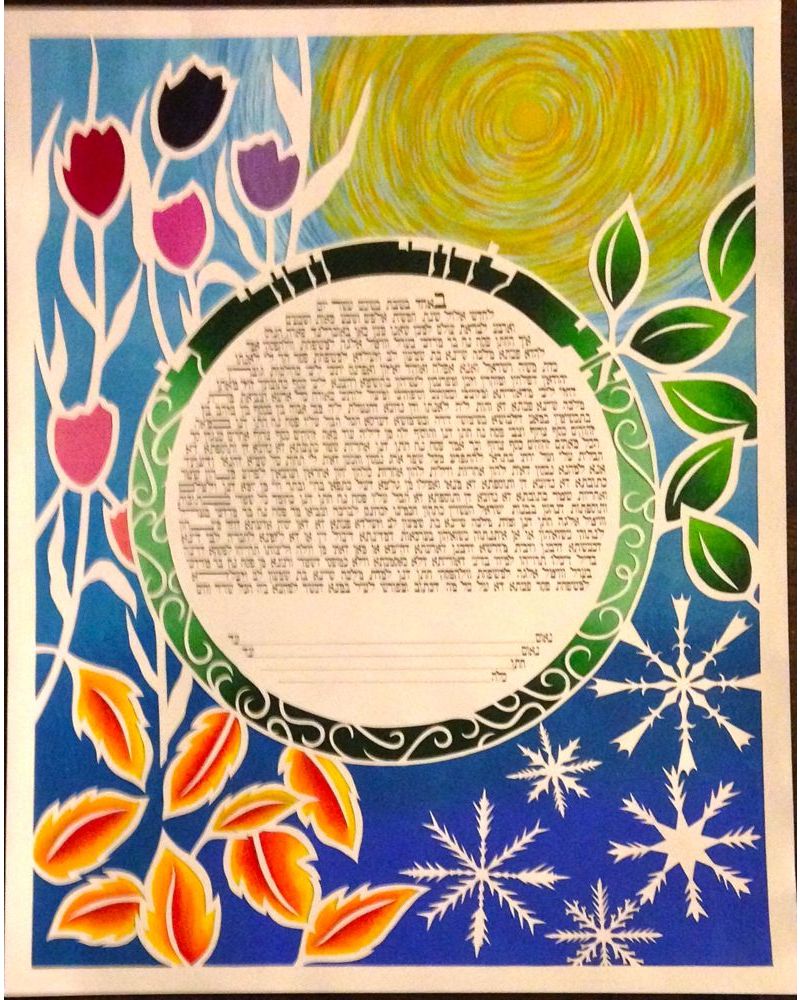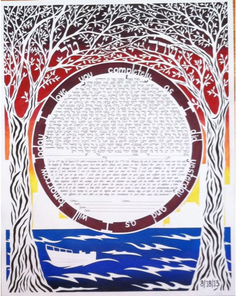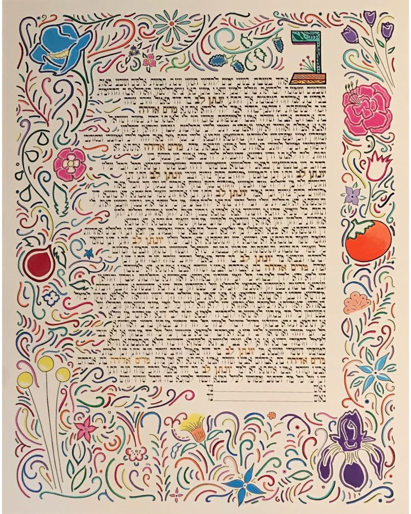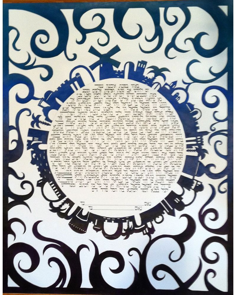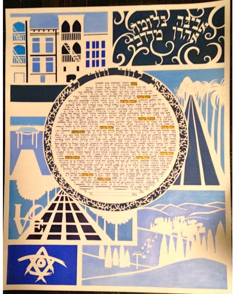 is an independent artist living in New York City. She works in a variety of mediums, including oil, watercolor, charcoal, acrylic, and paper-cut. She creates custom ketubot with both traditional and modern abstract imagery, producing designs that resonate with each couple and represent their interests, hopes, and unique relationship. Batya works closely with each engaged couple to ensure they feel their ketubah accurately and beautifully portrays their love.